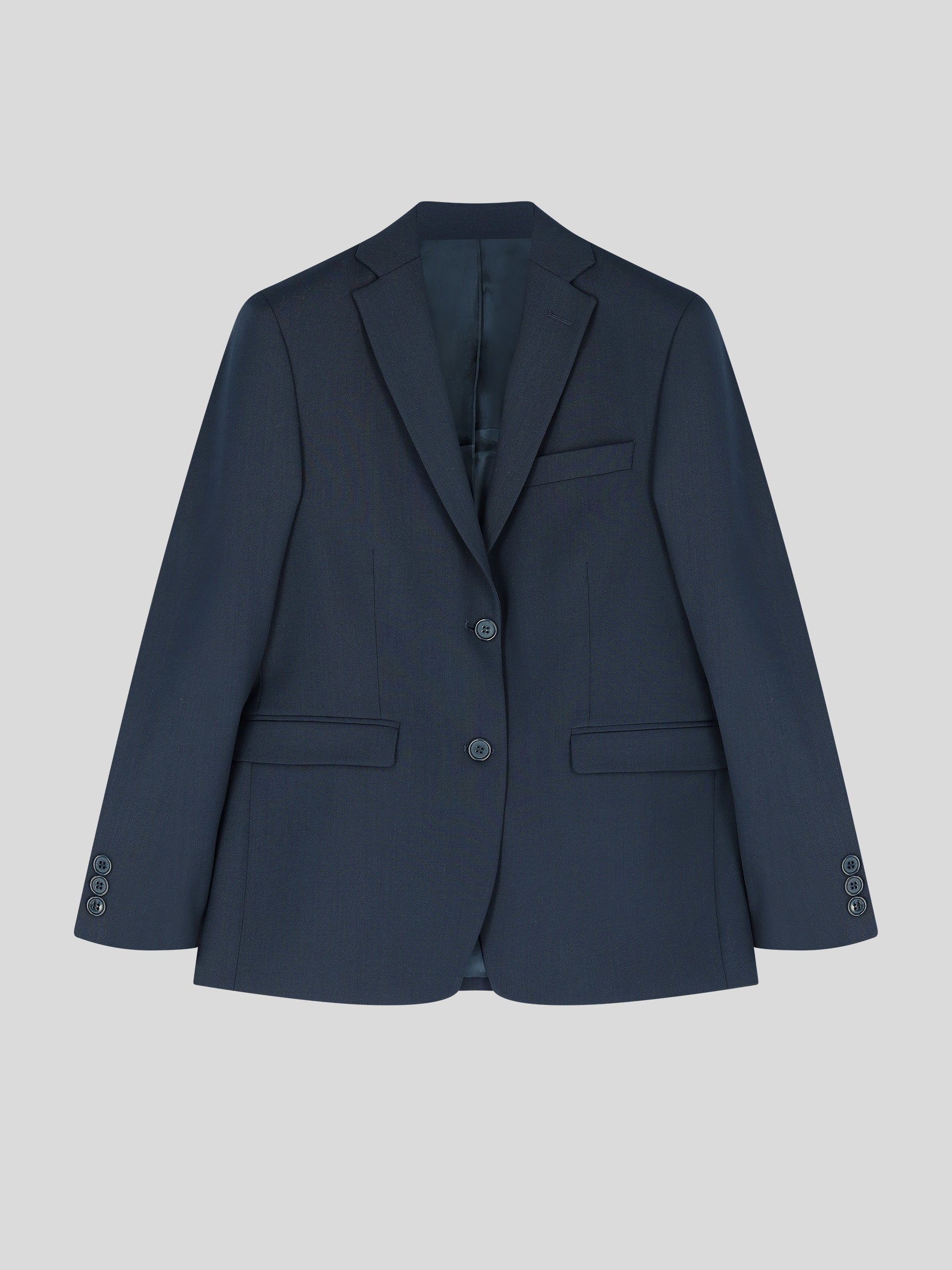 Oversized boyfriend blazer in een duurzame wolblend met viscosevoering. Voorzien van klassieke revers, klepzakken, borstzak, sluiting met twee knopen en enkelvoudige rugsplit.