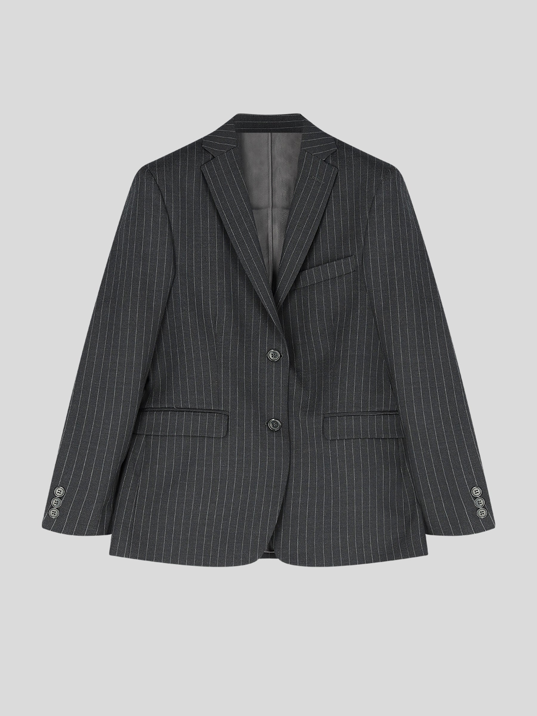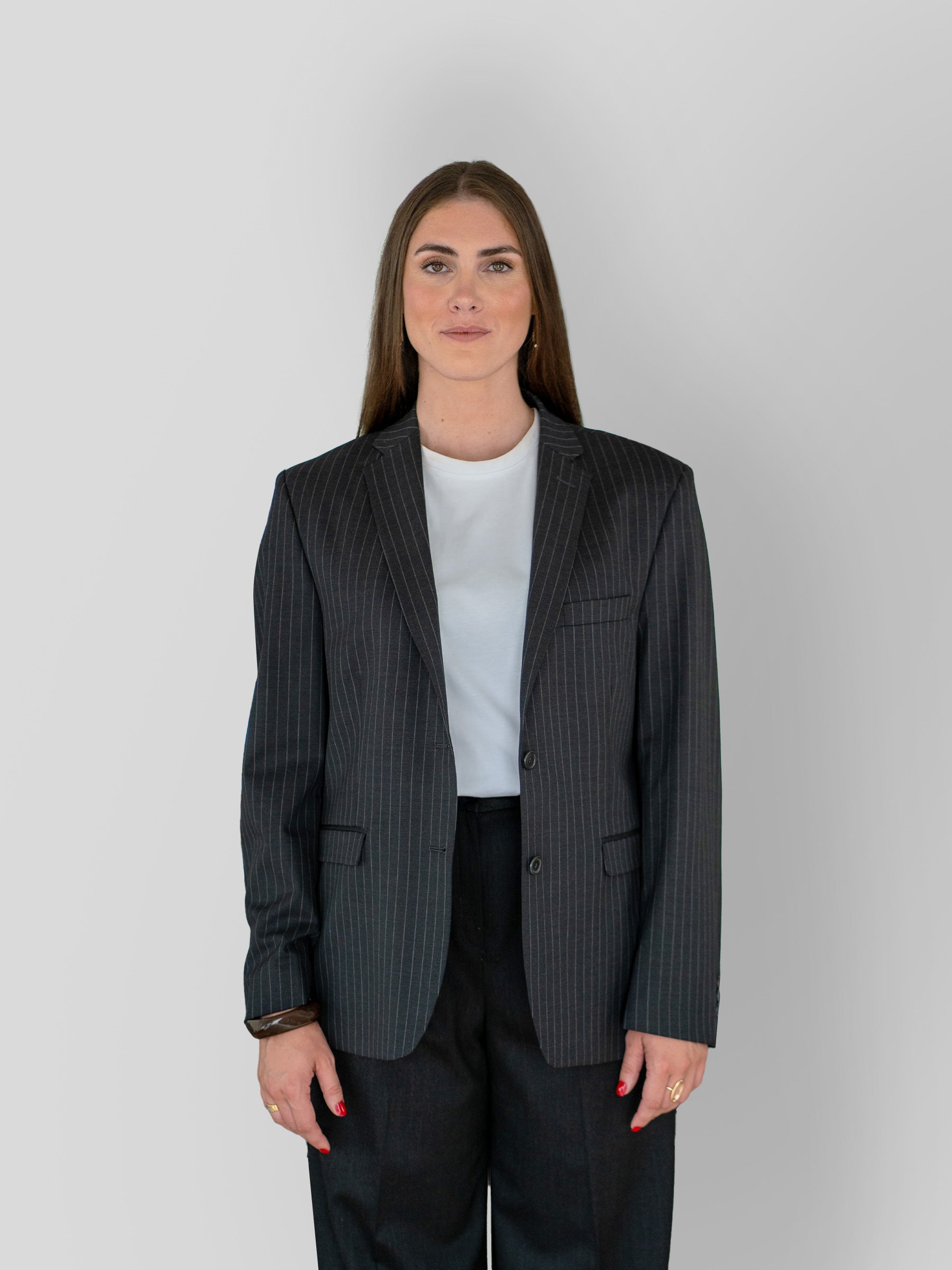 Oversized boyfriend blazer in een duurzame wolblend met viscosevoering. Voorzien van klassieke revers, klepzakken, borstzak, sluiting met twee knopen en enkelvoudige rugsplit.